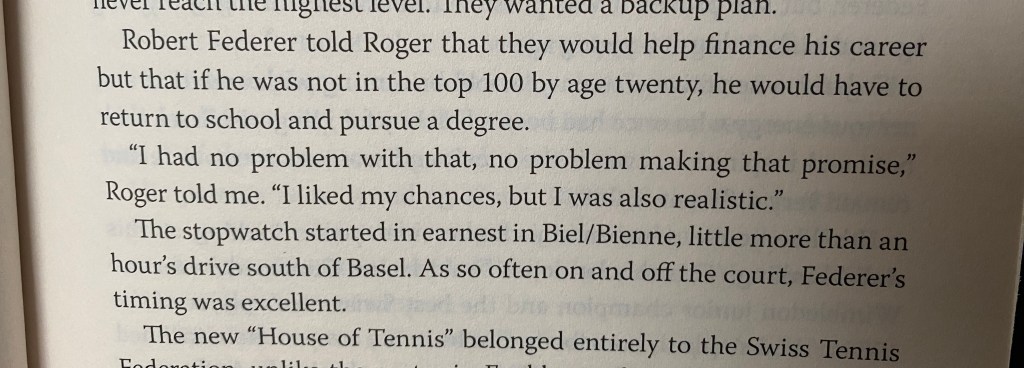 Clarey does the work speaking extensively to Roddick, who is legit interesting, Paul Annacone, ditto, and others in Roger’s close circle in addition to his many interviews with the man himself over 20 years. Roger’s parents and wife are only available in snippets harvested from other sources, most in Europe.
